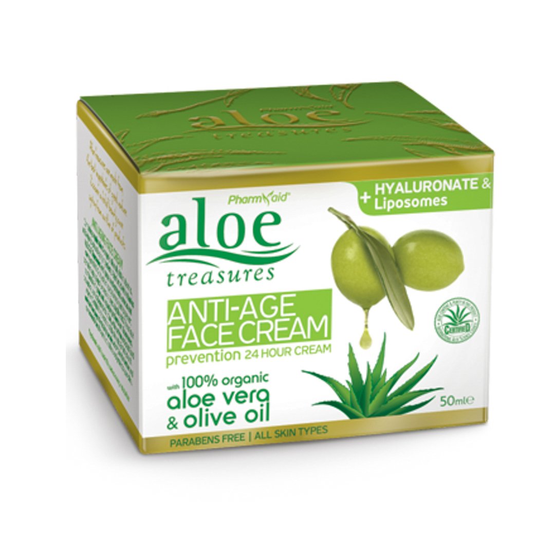 Αντιγηραντική κρέμα προσώπου με βιολογική αλόη και βιολογικό λάδι ελιάς, πλούσια σε βιταμίνες, αντιοξειδωτικά και αντιγηραντικά συστατικά. Ενισχυμένη με Βιταμίνες Α, Ε, C, F, λιποσώματα, εκχυλίσματα σπόρων κόκκινου σταφυλιού, κρόκου και συνένζυμο Q10. Κρέμα ημέρας ειδικά σχεδιασμένη για την πρόληψη των πρόωρων σημαδιών του γήρατος (Ρυτίδες έκφρασης, Μαύρα στίγματα). Ο μοναδικός συνδυασμός των αντιγηραντικών συστατικών που περιέχονται στο σταφύλι και τα λιποσώματα, προλαμβάνουν την καταστροφή των κυττάρων και του κολλαγόνου, ενώ ο κρόκος και η σταθεροποιημένη Βιταμίνη C, εμποδίζουν τον σχηματισμό μαύρων στιγμάτων. Εμπλουτισμένη με ενυδατικά συστατικά, υαλουρονικό οξύ, βούτυρο καριτέ και αντηλιακό φίλτρο, μαλακώνει και προστατεύει την επιδερμίδα.