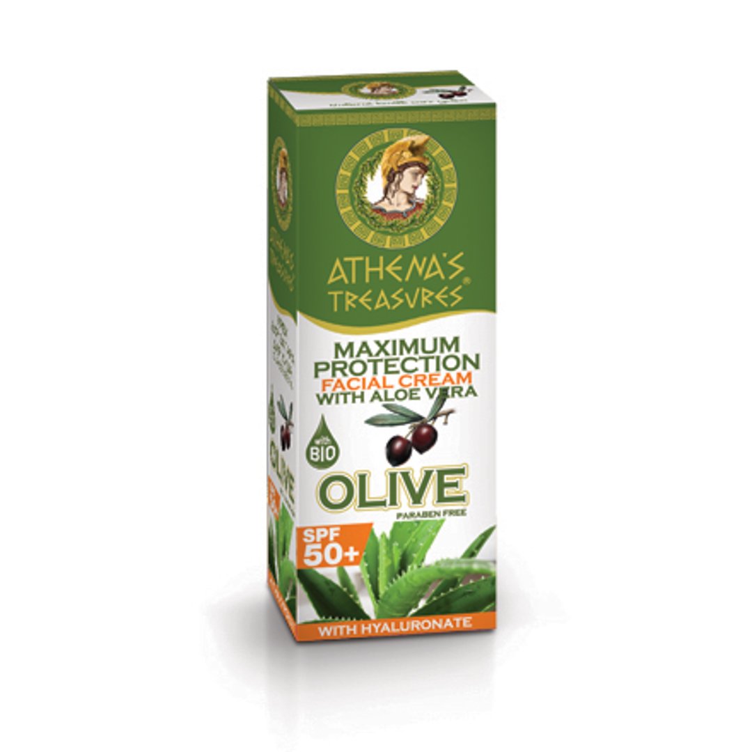 Αντηλιακή κρέμα προσώπου με βιολογικό λάδι ελιάς, πλούσια σε βιταμίνες, αντιοξειδωτικά και αντιγηραντικά συστατικά. Ενισχυμένη με Βιταμίνες Α, Ε, χυμό αλόης, λάδι καλεντούλας, βούτυρο καριτέ, πανθενόλη & ενυδατικά συστατικά. Ειδικά σχεδιασμένη για το πρόσωπο. Προστατεύει αποτελεσματικά από την βλαβερή UVA και UVB ακτινοβολία, ενώ ταυτόχρονα θρέφει, περιποιείται και ενυδατώνει την επιδερμίδα. Αποτελεί ασπίδα προστασίας για το πρόσωπο, όχι μόνο από τον ήλιο αλλά και τις περιβαλλοντικές επιδράσεις που προκαλούν ξήρανση και πρόωρη γήρανση του δέρματος. Με δείκτη πολύ υψηλής προστασίας spf 50+ & αλόη.