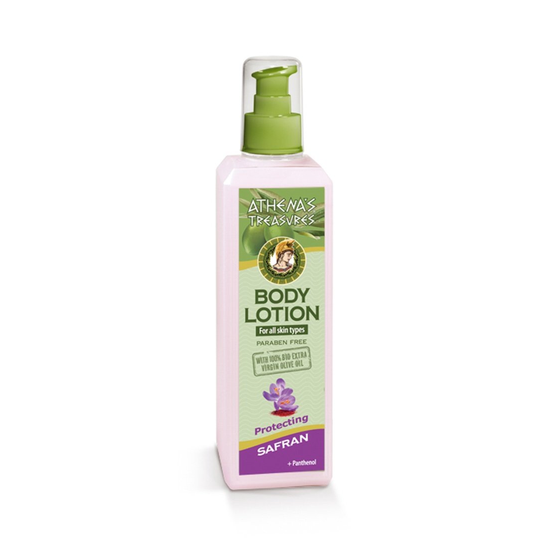 Γαλάκτωμα σώματος με βιολογικό λάδι, εκχυλίσματα ελιάς & ελληνικού κρόκου. Ενισχυμένο με βιταμίνες Α, Ε, πανθενόλη, βούτυρο καριτέ, ενυδατικά & αντιγηραντικά συστατικά. Θρέφει, μαλακώνει & προστατεύει την επιδερμίδα. Ταυτόχρονα ενυδατώνει το δέρμα, χαρίζοντας ελαστικότητα & βελούδινη αίσθηση απαλότητας.