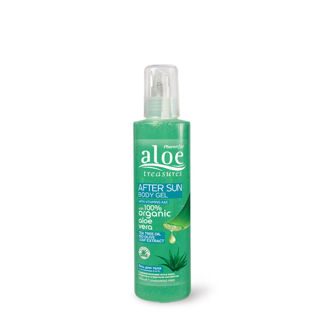 Ζελέ σώματος για μετά τον ήλιο με βιολογικό εκχύλισμα αλόης, βιολογικό εκχύλισμα φύλλων ελιάς και έλαια τσαγιού. Ενισχυμένο με Βιταμίνες Α & Ε, πανθενόλη, πρωτείνες γιαουρτιού, εκχύλισμα αγγουριού και ενυδατικά συστατικά. Προστατεύει, θρέφει και καταπραύνει το σώμα. Ενυδατώνει και δίνει πίσω στο δέρμα την χαμένη του ελαστικότητα και απαλότητα. Δεν λαδώνει.