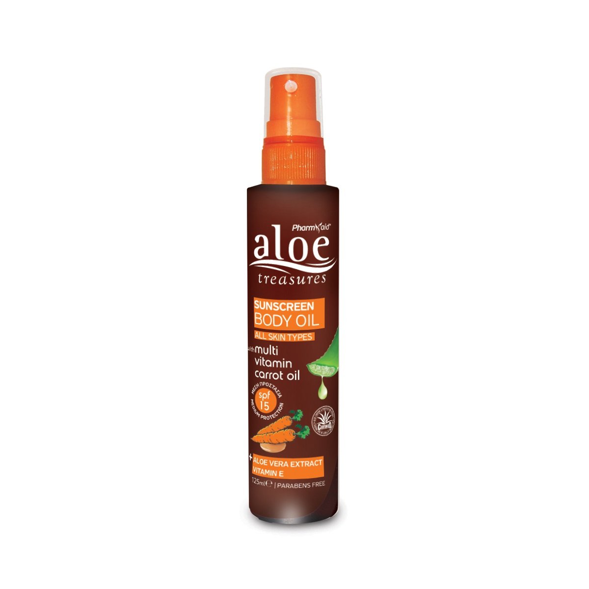 Αντηλιακό ξηρό λάδι σώµατος µε δροσιστική αλόη, πολυβιταμινούχο έλαιο καρότου και αντιοξειδωτική βιταμίνη Ε.