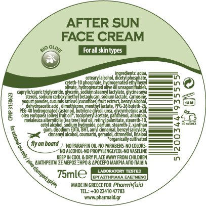 Δροσιστική κρέμα προσώπου για μετά τον ήλιο, για όλους τους τύπους δέρματος με βιολογικό ελαιόλαδο και γιαούρτι.