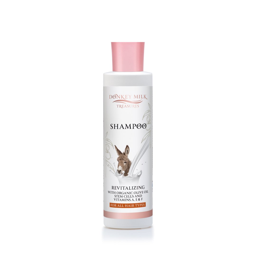 Aναζωογονητικό σαμπουάν για όλους τους τύπους μαλλιών.Με 100% Ελληνικό γάλα γαϊδούρας κρυογονικής επεξεργασίας*,